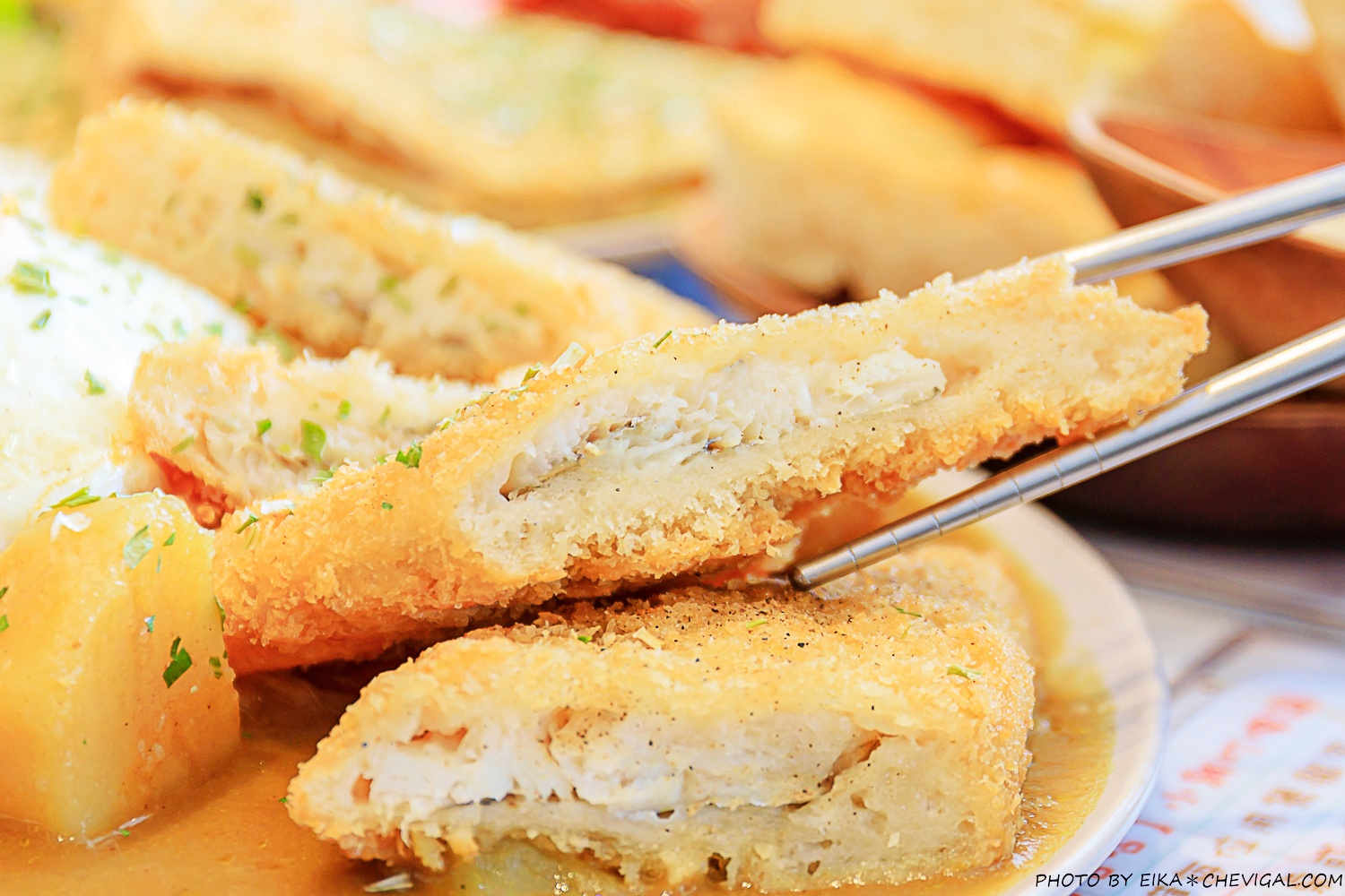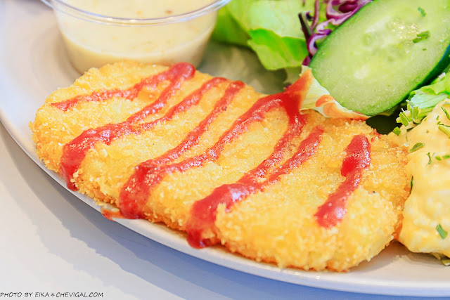 薯餅炸得相當酥脆,吃起來沒有惱人的油耗味;裡頭的馬鈴薯口感綿密,搭配外皮的層次感還不錯。