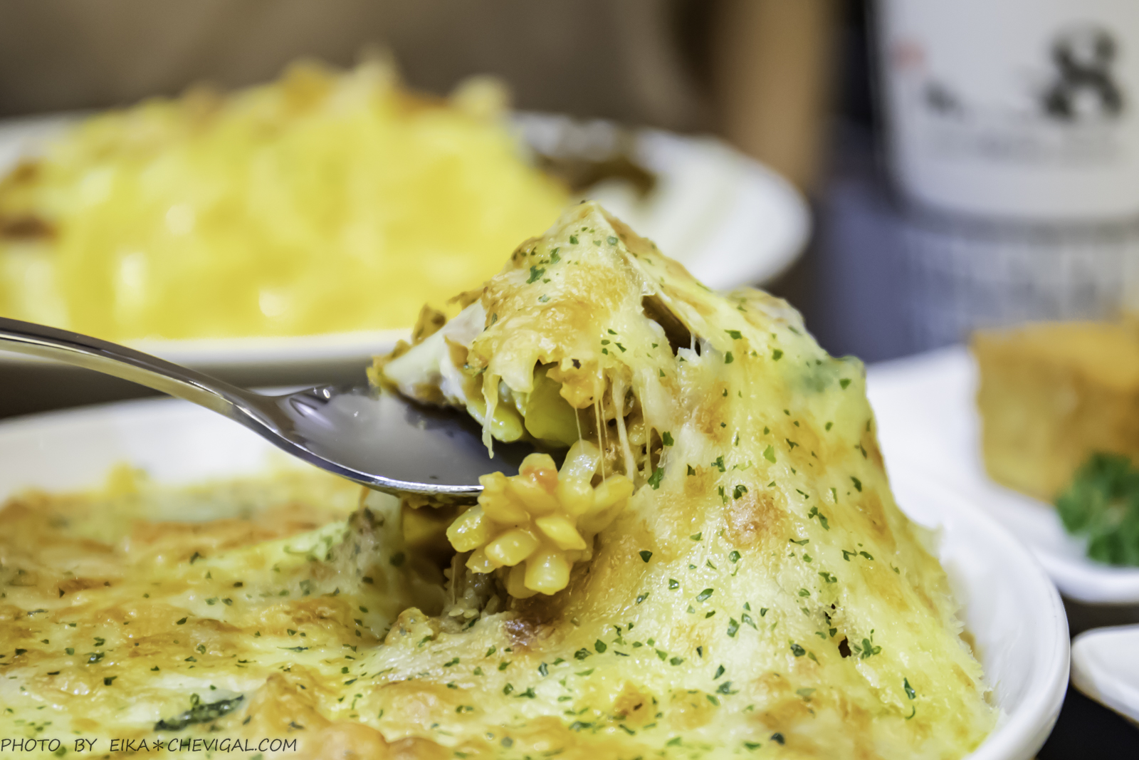 店家已經將金黃酥脆的藍帶炸豬排事先分切好,享用時更加方便!小心翼翼地將豬排叉起來,還能看到起司牽絲的畫面,真的好誘人!推荐起司控必點哦~