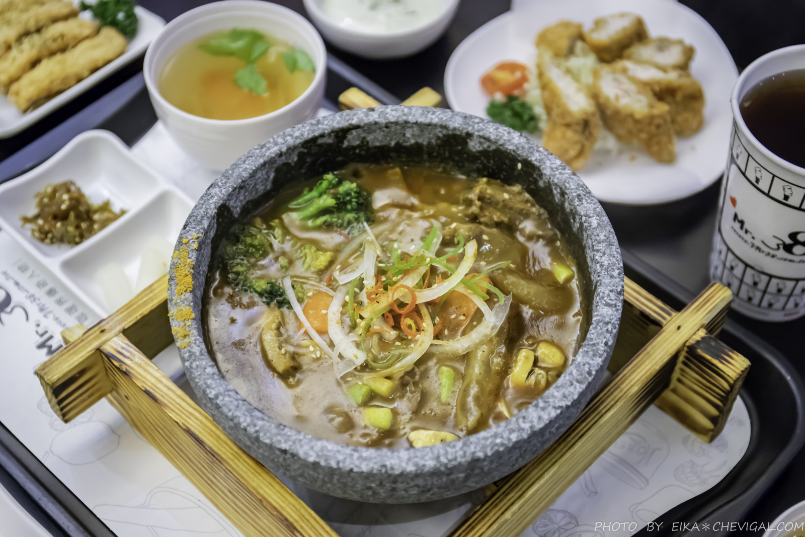 以中式牛三寶和新鮮蔬菜長時間燉煮,再加入斯里蘭卡風味的咖哩香料,並以韓式石鍋拌飯的形式呈現,吃到最後還有特有的鍋巴,可以說是融合了多國特色的異國料理!