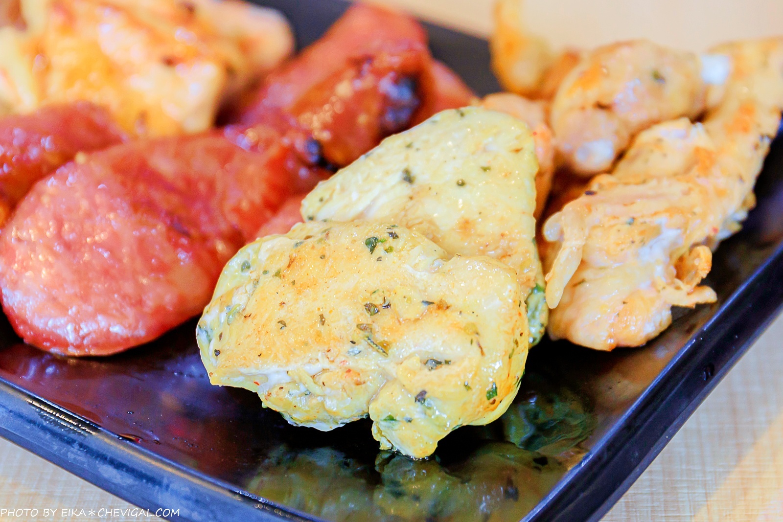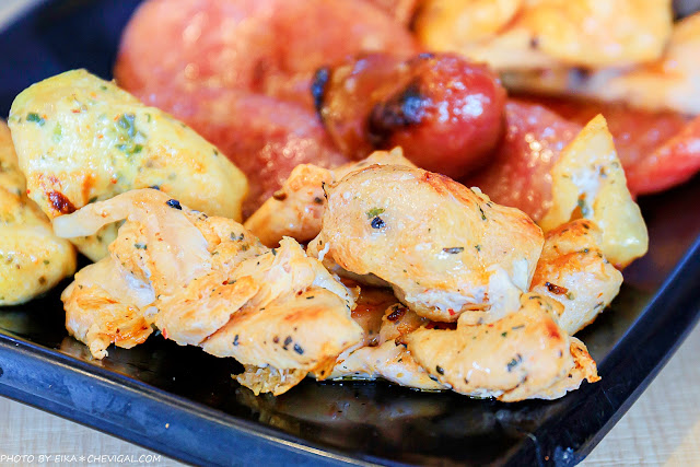 在吧台可以夾取各式肉品,像是香腸、茴香雞腿排、塔香雞腿丁、紐奧良雞腿丁、紐奧良雞翅、咖哩雞胸與檸檬翅刀,多款醃漬的肉品風味都還蠻有特色的,在一般吃到飽餐廳也比較少見。