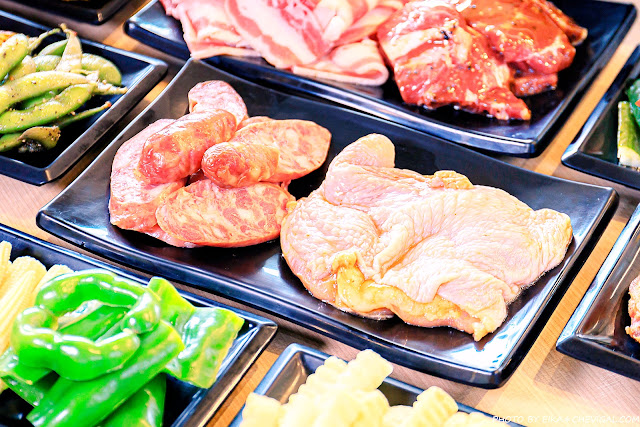 另外還有魷魚、蜜汁豬排、玫瑰豬、原味豬梅花、大醬豬五花、黑胡椒牛小排與原味牛五花,肉質色澤也很新鮮,一次就能享用到14種肉品,肉肉控還不趕緊吃起來~
