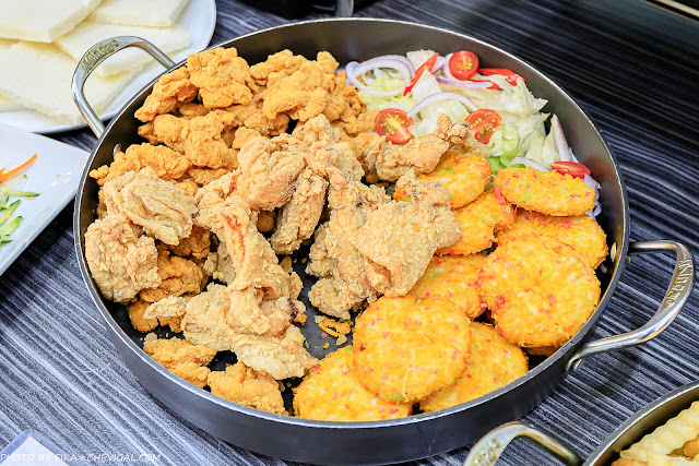 熟食區最熱門的品項莫過於這道檸檬翅刀了!幾乎是上桌沒多久就被清空~香酥的外皮裡頭吃得到鮮嫩的肉質,而且還帶有淡淡的檸檬香氣,熱熱地吃起來很涮嘴。