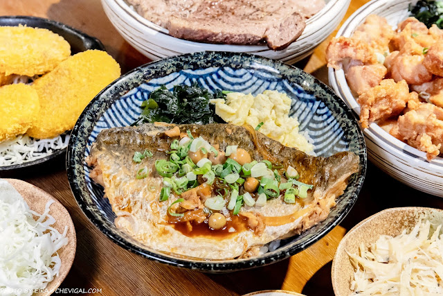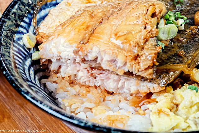 和魚編很熟的好朋友都知道魚編很愛吃鱸魚,不過鱸魚與丼飯的組合可以說是非常少見~其實這道也是沐丼近期推出的新品,老闆相當大方地選用了半隻的新鮮鱸魚片,幾乎也是要蓋滿整碗丼飯,與一般普通的冷凍魚排口感真的就是不一樣!