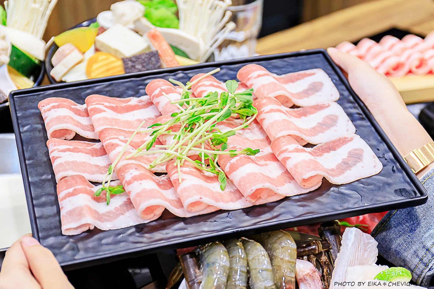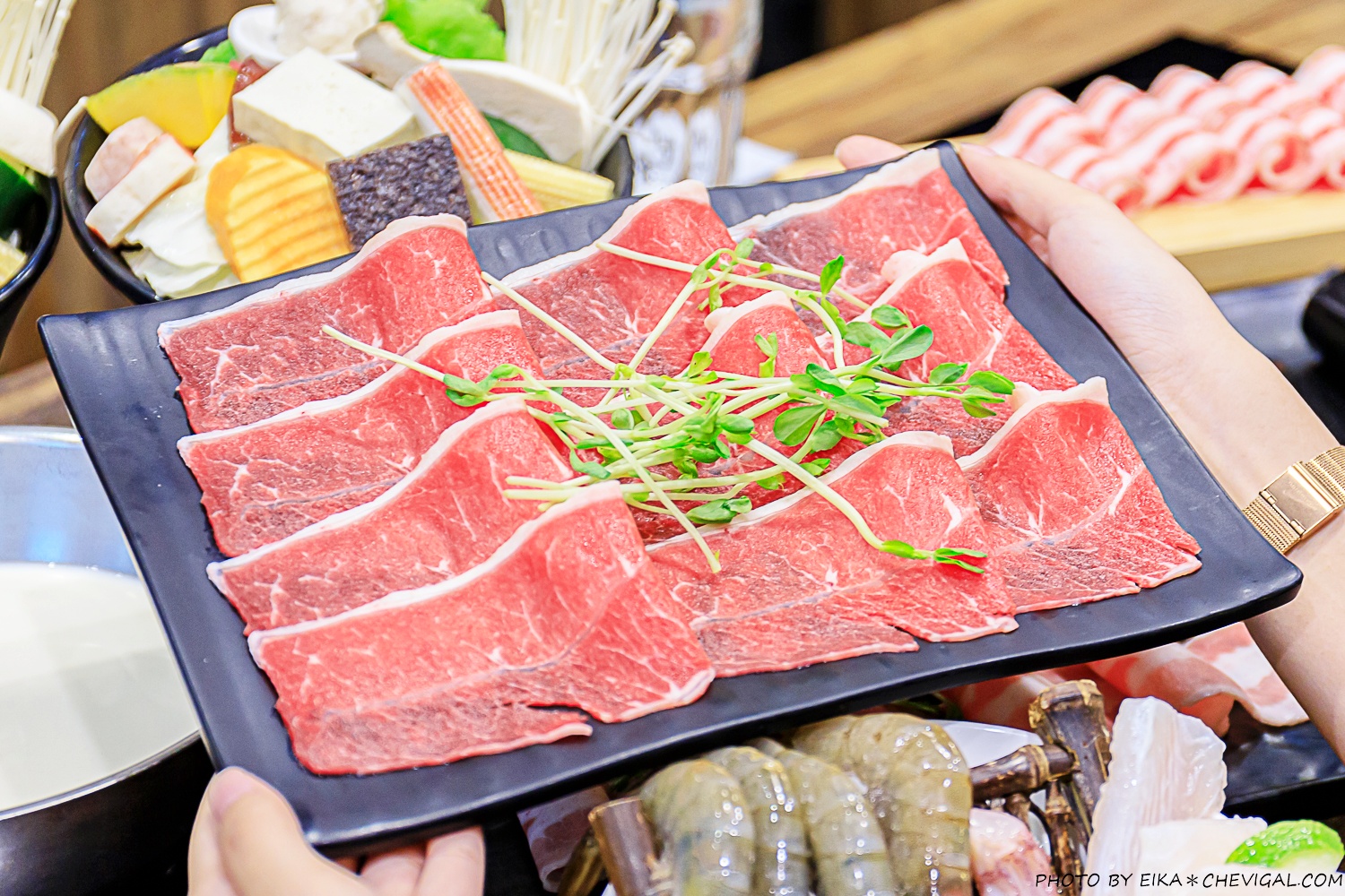 特選美國板腱牛肉$298元,可以說是油花比例較少的部位,不過油花分布均勻,不僅搭配兩種湯底都合適,而且吃起來也比較不容易膩口,稍微涮個幾下就能起鍋享用。