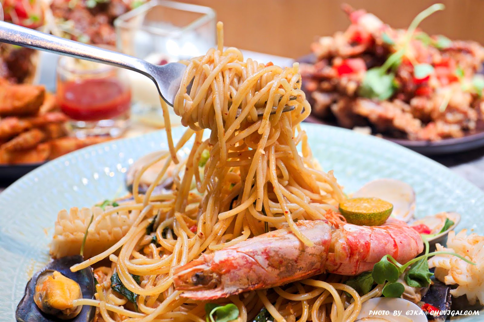 選用的麵條同樣Q彈好吃,利用泰國特別的「冬泱」料理手法,微酸微辣的風味就很開胃,另外更能帶出海鮮本身的鮮甜,非常推薦唷!