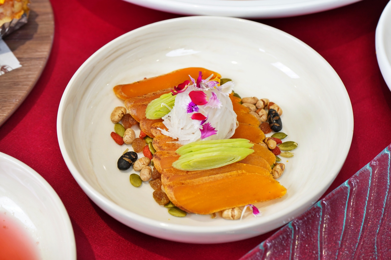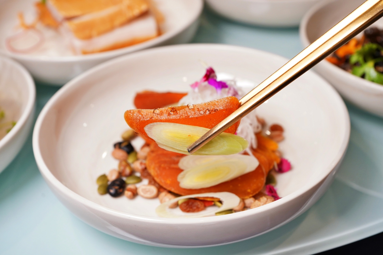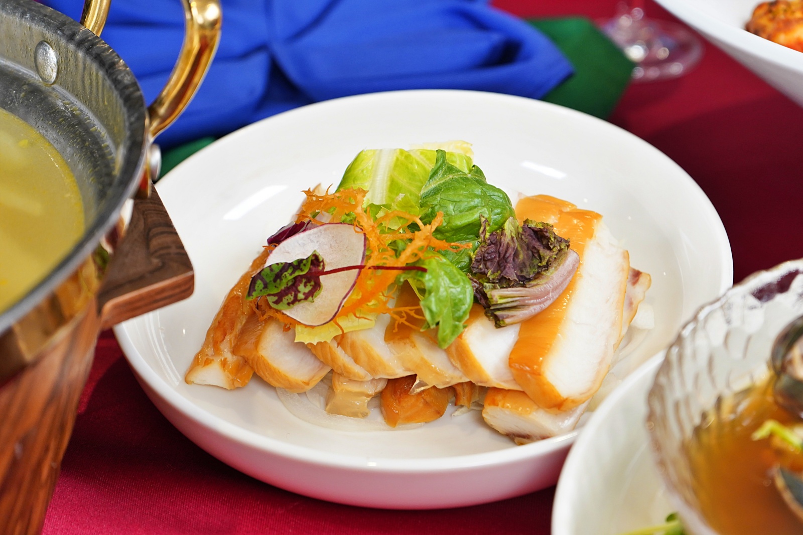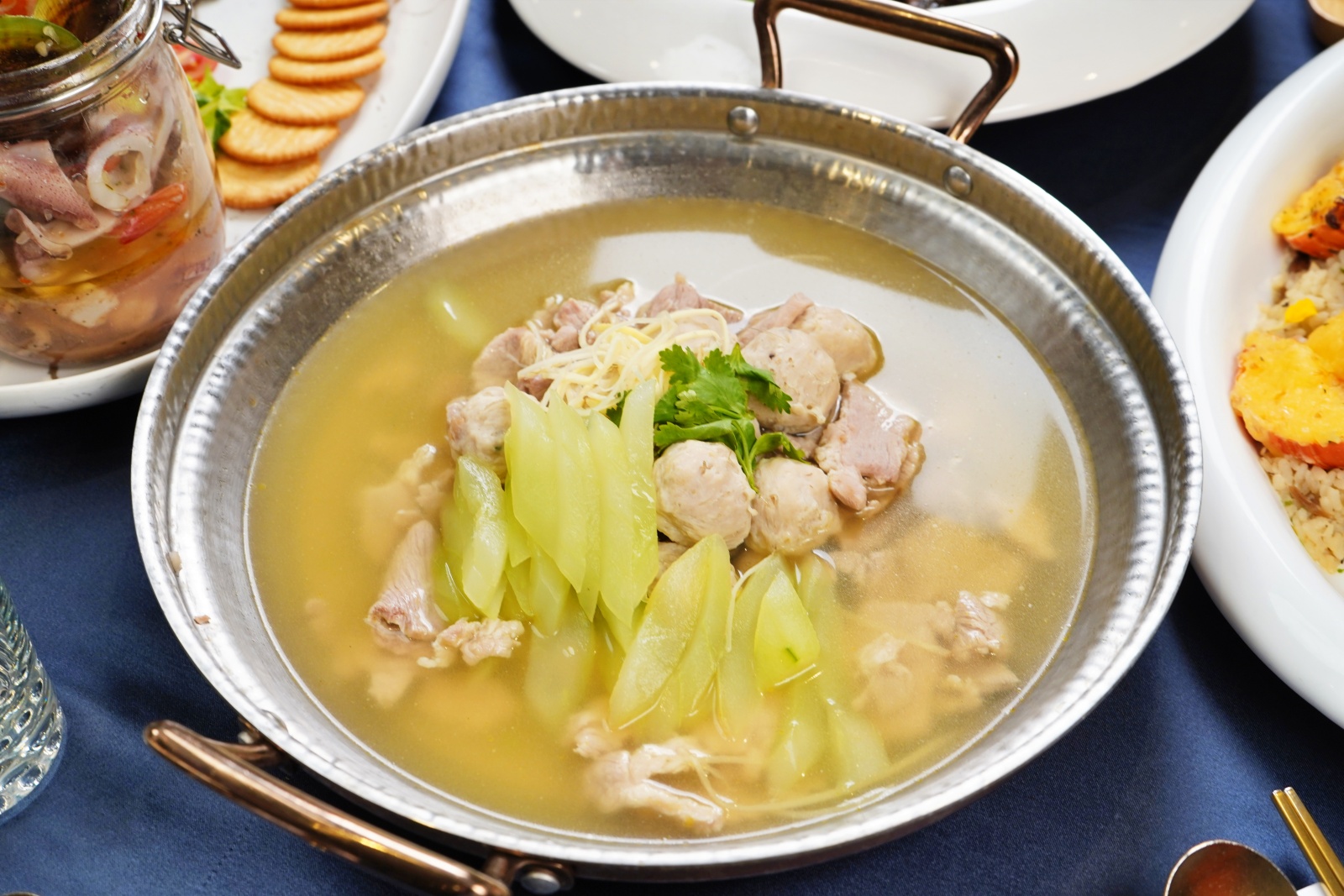 這鍋魚翅丸梅肉黃瓜鍋則是兼具澎湃視覺與家常滋味的暖心湯品,除了彈牙鮮甜的魚翅丸之外,同時還搭配了搭配厚切梅花豬與吸飽湯汁的大黃瓜,溫潤帶甜的湯底,從長輩到年輕人的接受度都很高。