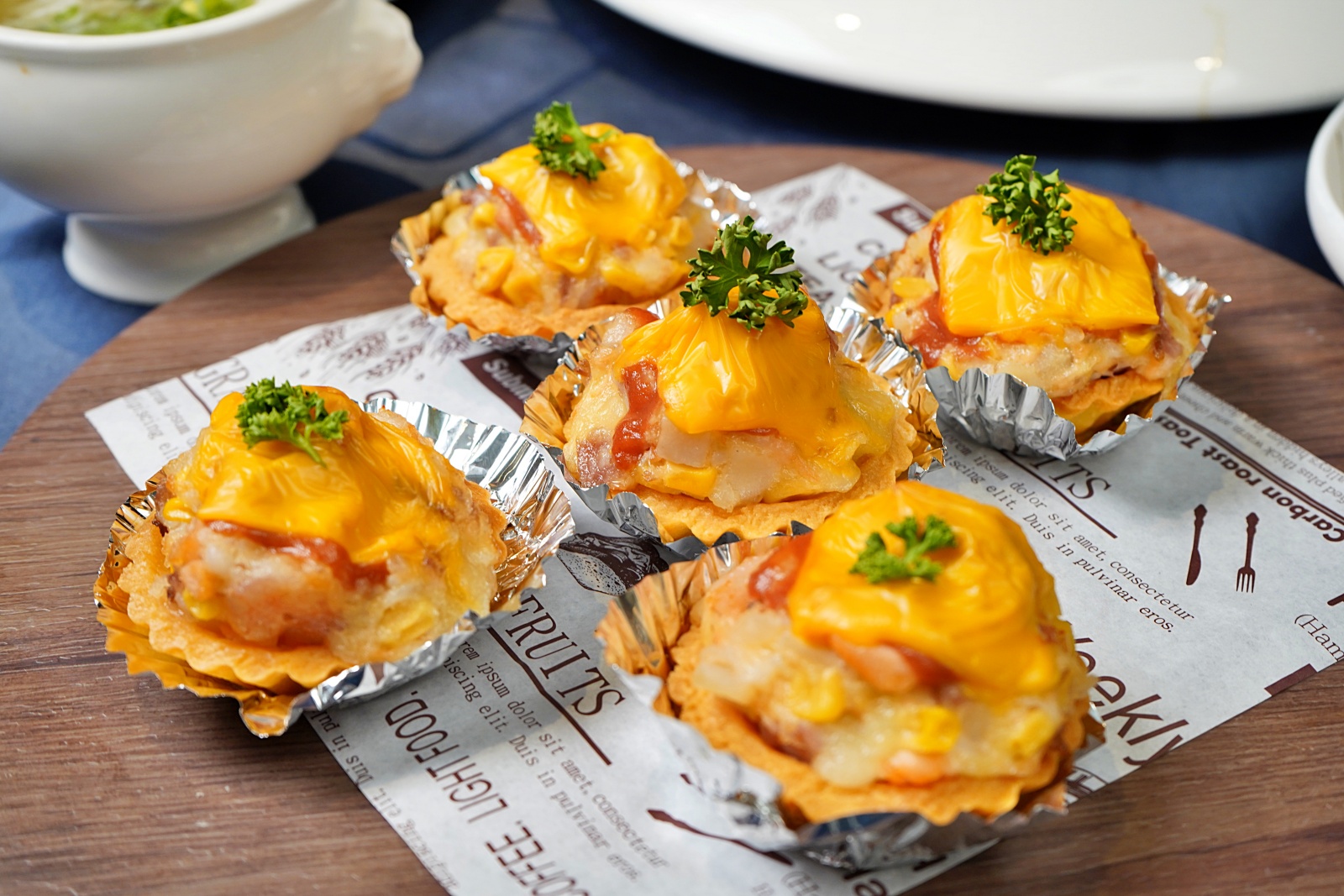 以酥香手作塔皮包覆白醬、鮮嫩鮭魚、煙燻鮭魚與莫札拉起司,濃郁滑順的紮實口感層次,吃起來有夠滿足,私心覺得比一般的披薩還好吃!