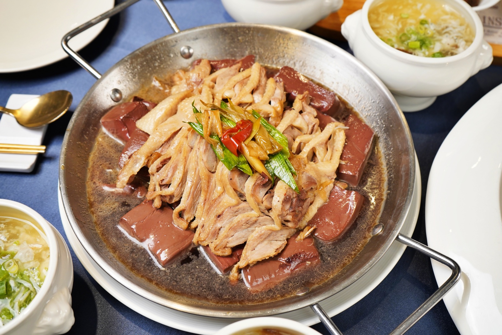 這道招牌珍味燒鵝打破了我們對於燒鵝的傳統印象,表面是以溫火細煮的滑嫩鵝肉,底部則是吸飽湯汁的塊狀鴨血,口感不但細緻,甚至還會爆汁,清潤甘美的滋味耐吃又不油膩。