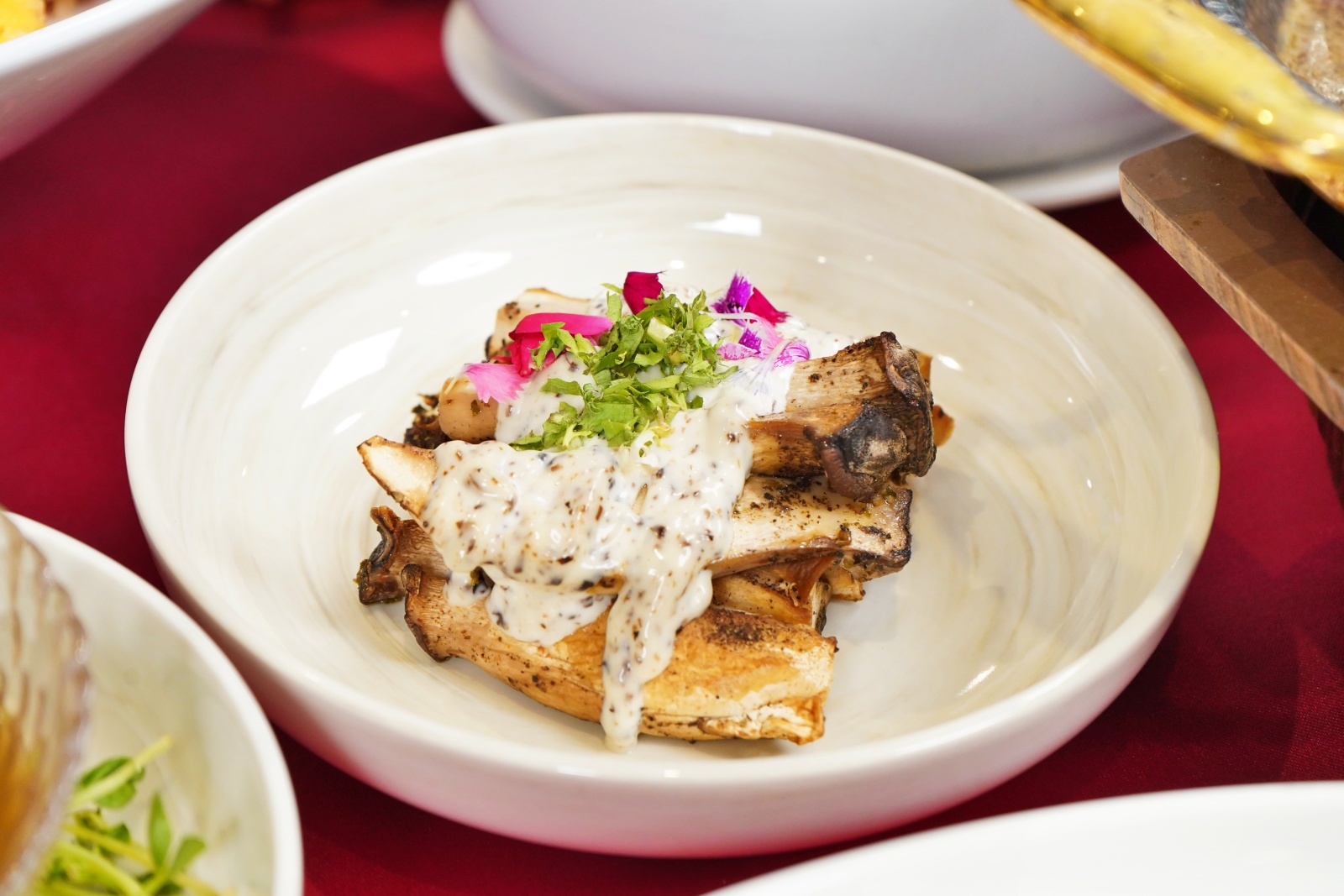 底層則是奶香濃郁、口感綿密的蕈菇燉飯,每一口都吃得到蕈菇的自然香氣與濃郁奶香,與龍蝦的海味完美融合!