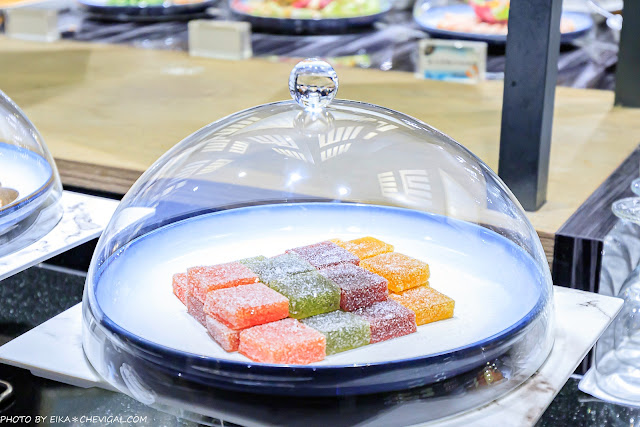 西式自助百匯常見的起司拼盤當然也沒有缺席,另外還有超酷的奇福餅乾&鵝肝醬,淡淡鹹味的奇福餅搭配上濃郁的鵝肝香氣,細細品嚐就好滿足。