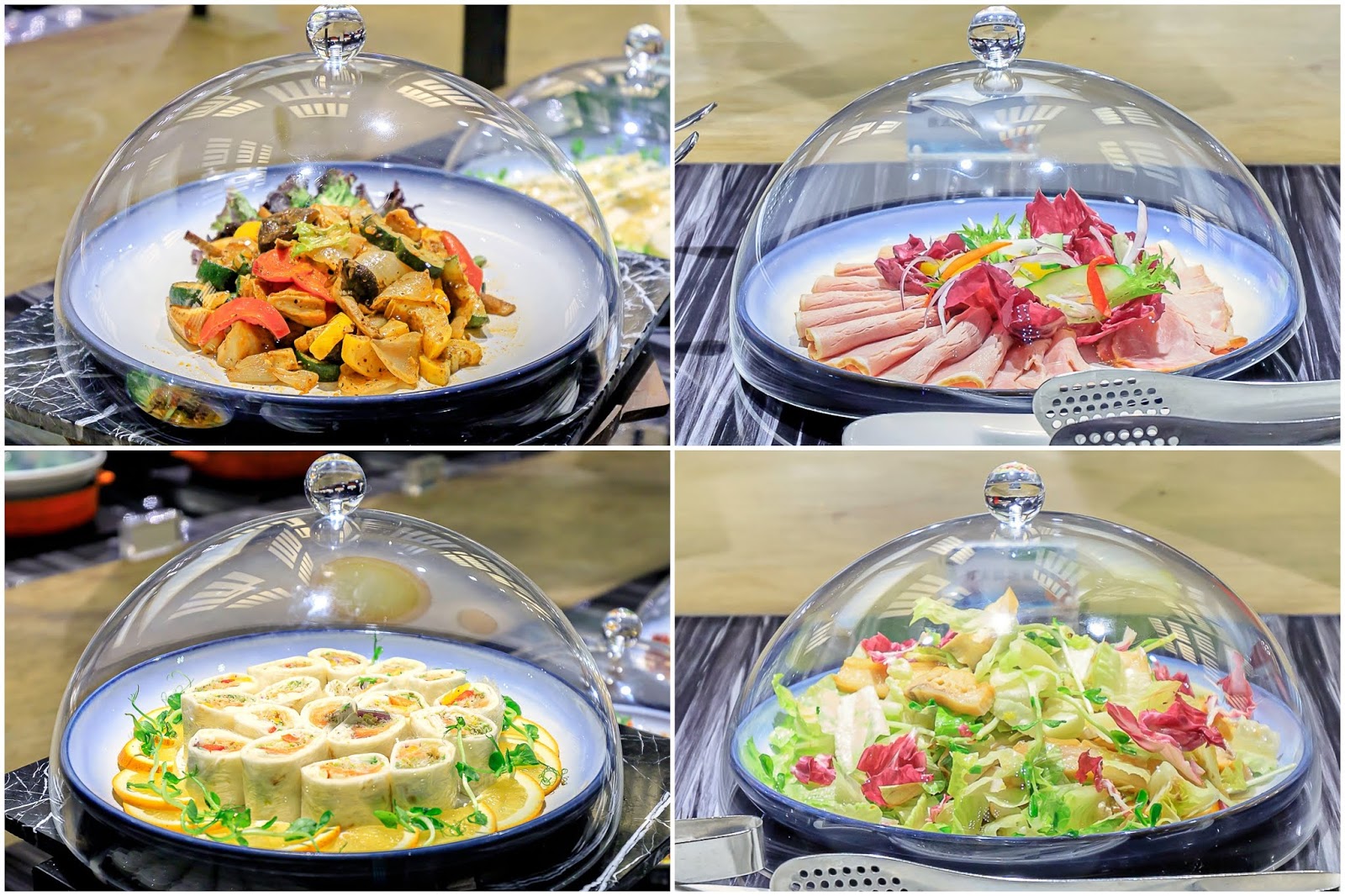香料陳醋烤蔬菜、歐式風味冷肉皿、芥末鮮蔬鯊魚煙、洋芋沙拉、鮭魚慕絲派、鮮蔬涼拌海蜇絲、蕃茄馬茲瑞拉沙律……等等,多種開胃菜色特別適合迎接炎炎夏季。