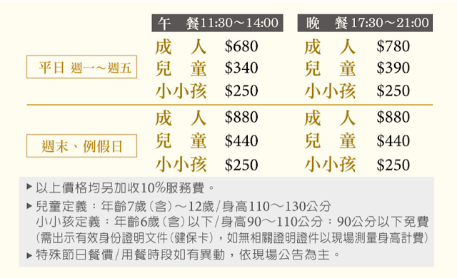 這裡提供樂食自助百匯目前的收費給你們參考,以上價位均另加收一成服務費;由於我們是假日晚餐來用餐,菜色相對起來會比平日午餐豐富很多,如果想吃澎派一點,假日來吃準沒錯!