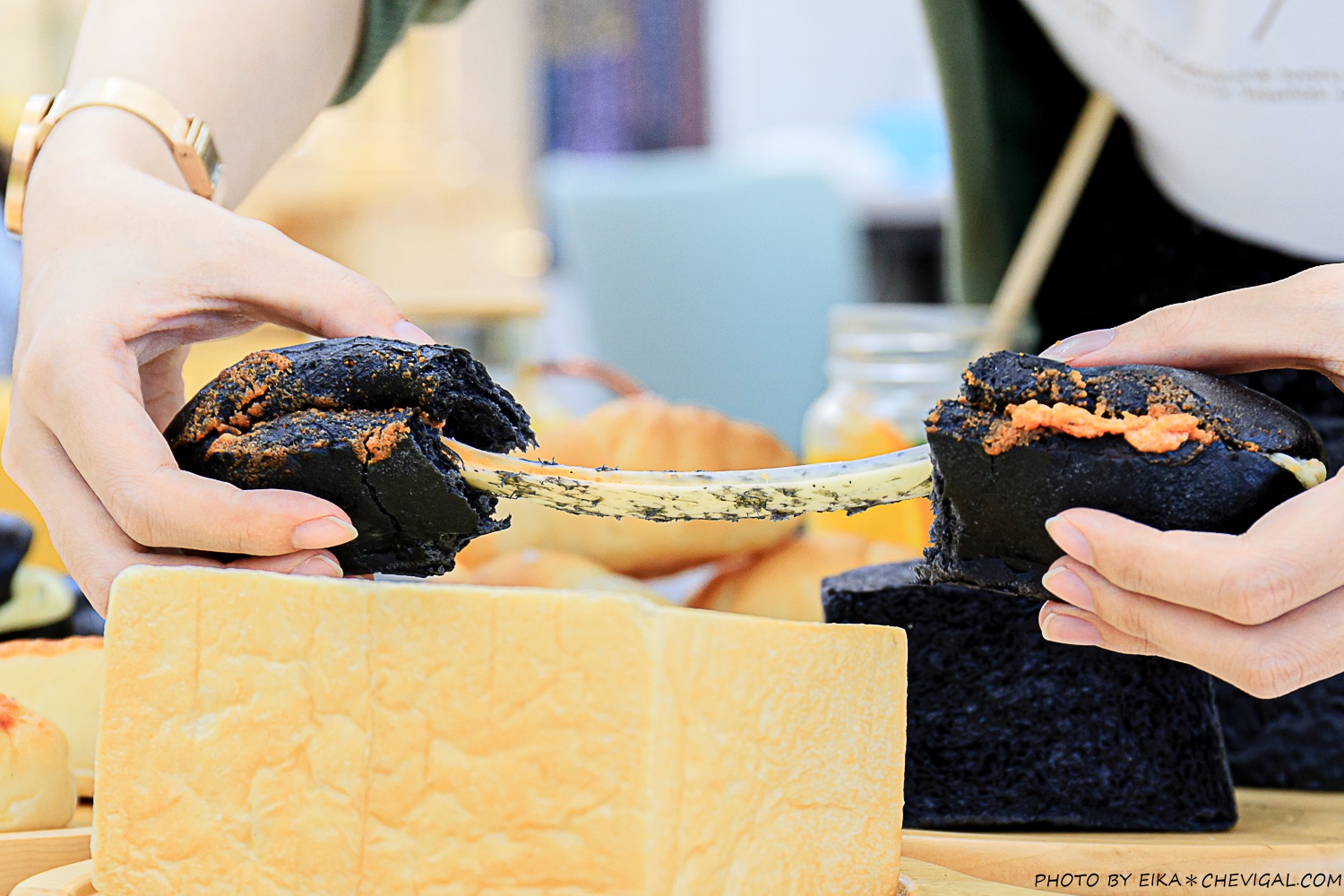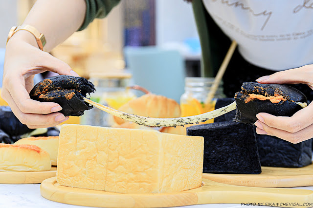 極黑起司明太子是目前店內唯二可以拉起司牽絲的品項,與極黑起司鹽可頌相同,想拉牽絲拍照建議在出爐5-7分鐘內完成,才不會發生一拉就斷的悲劇XD