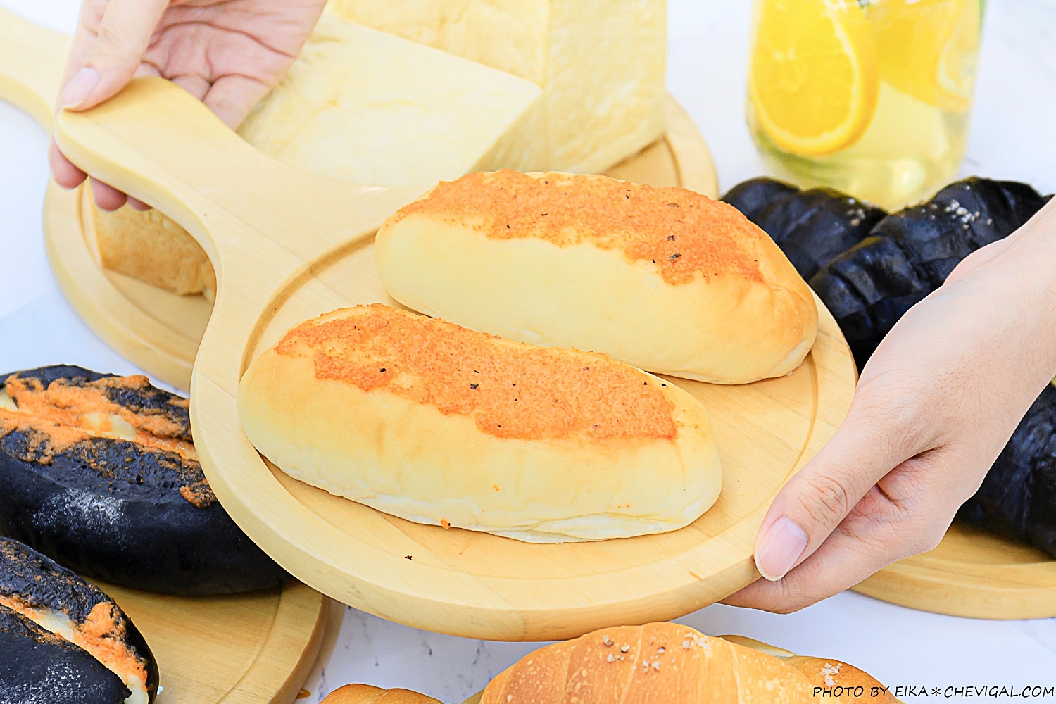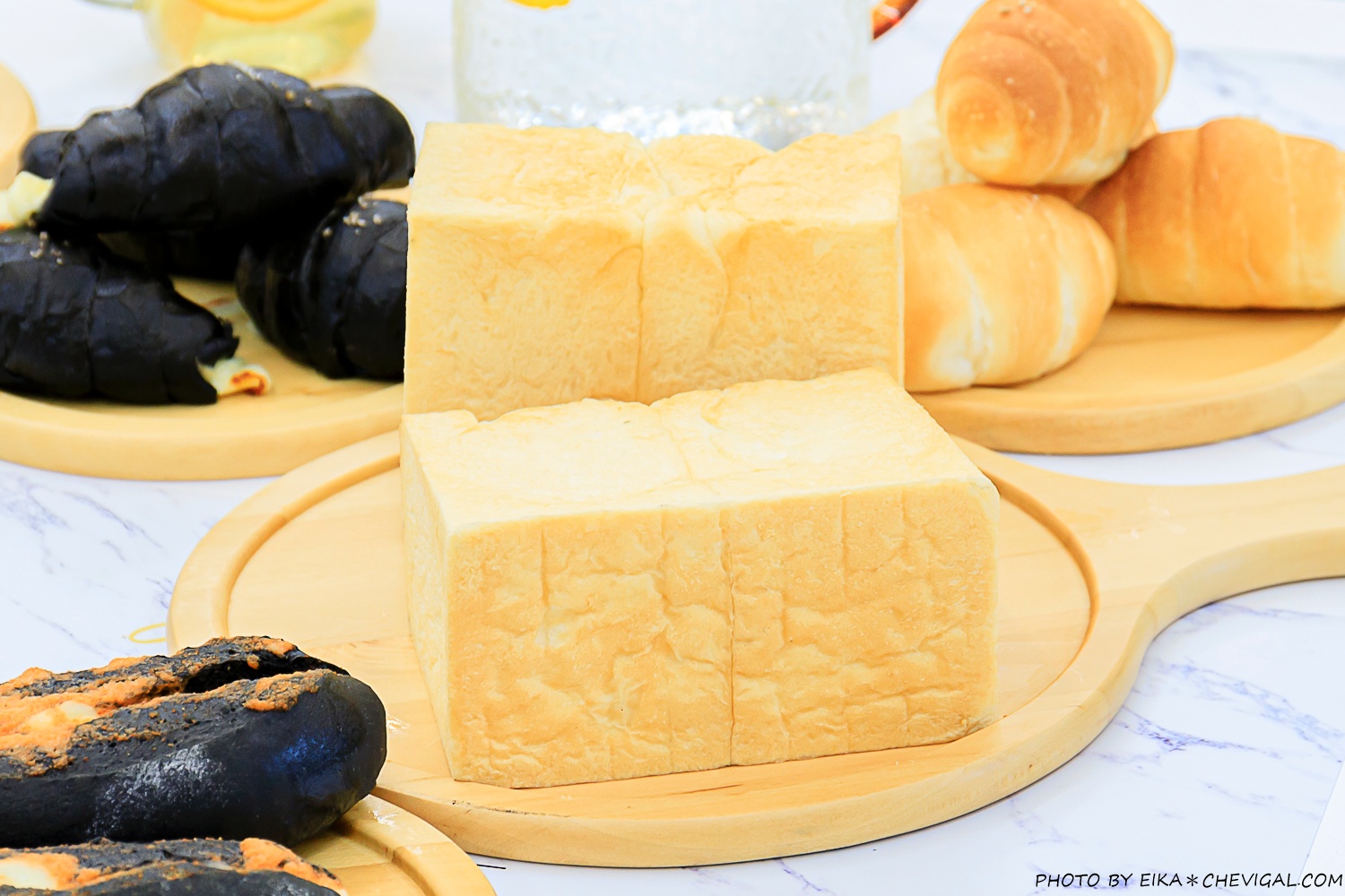 生吐司$80元,有黑的生吐司,那當然也有基本款的生吐司啦!喜歡綿密鬆軟口感的朋友,也可以參考店內的一般生吐司,價位與台中其他麵包店所販售的生吐司相比,也來得親民不少。