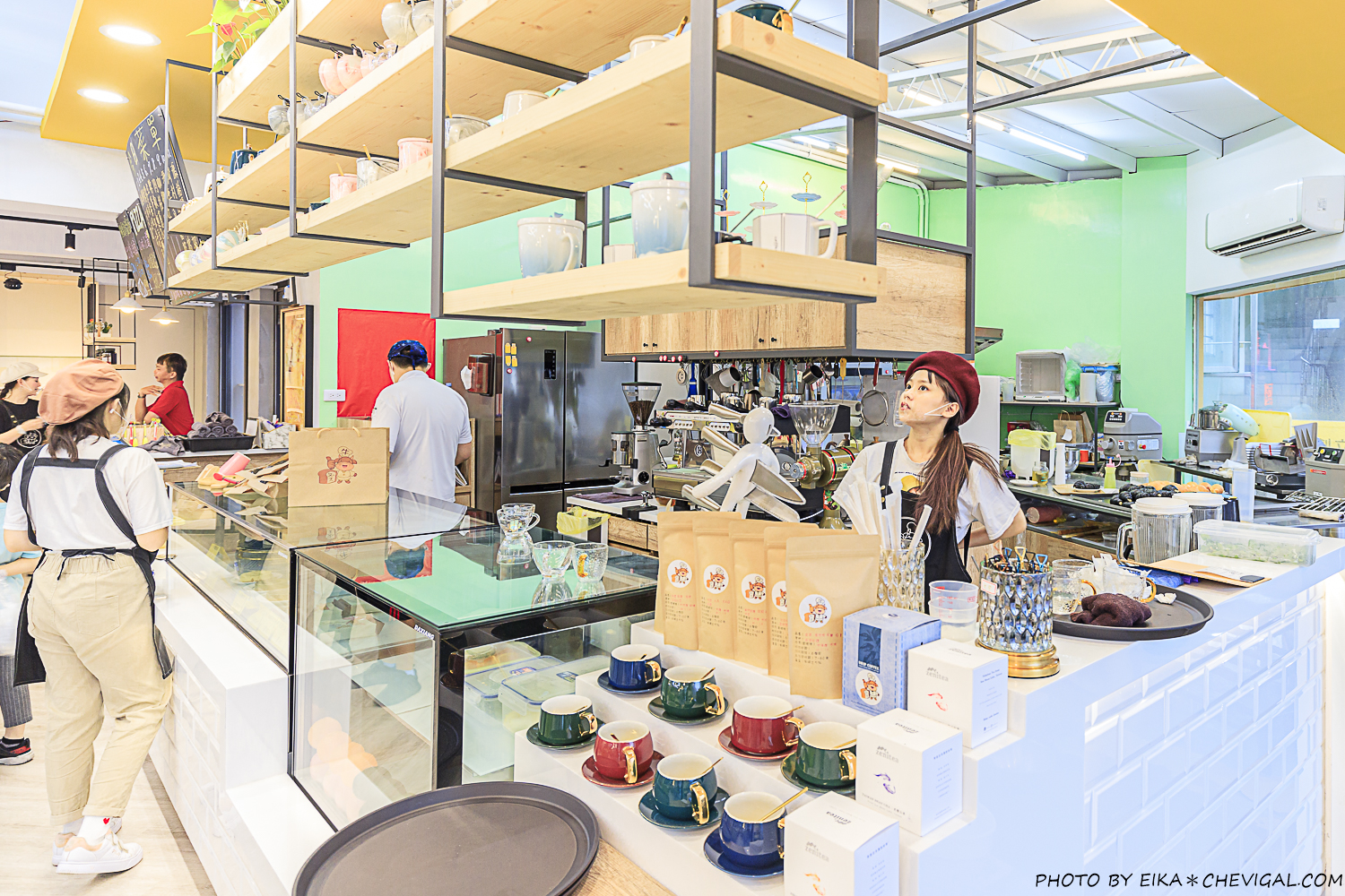 內用的座位以一中商圈的咖啡廳來說算是非常多,繽紛的沙發色彩搭配上大理石桌面,特別活潑又不失現代感!另外還有十人的小包廂可以預訂租用~冷氣也很給力,即使我們來訪的這天客滿,室溫同樣相當涼爽。