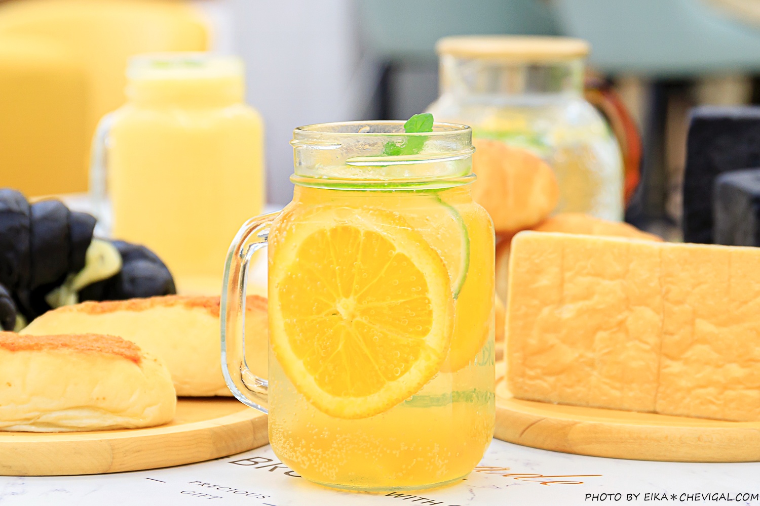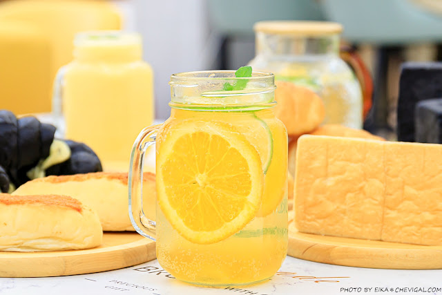 每桌內用的座位上都有提供一壺檸檬水,喝起來帶有淡淡果香,搭配各款麵包、甜點也能襯托本身的香氣,如果喝完了也能請店家續加。