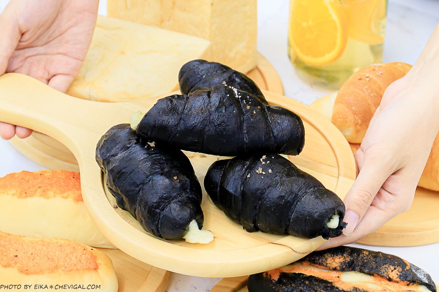 極黑生吐司$90元,最近超夯的生吐司這裡也能買到囉!想不到生吐司也有極黑版本,極黑生吐司的柔軟口感之中帶點咬勁,咀嚼的當下還能感受到淡雅細緻的麵香與竹炭香氣。