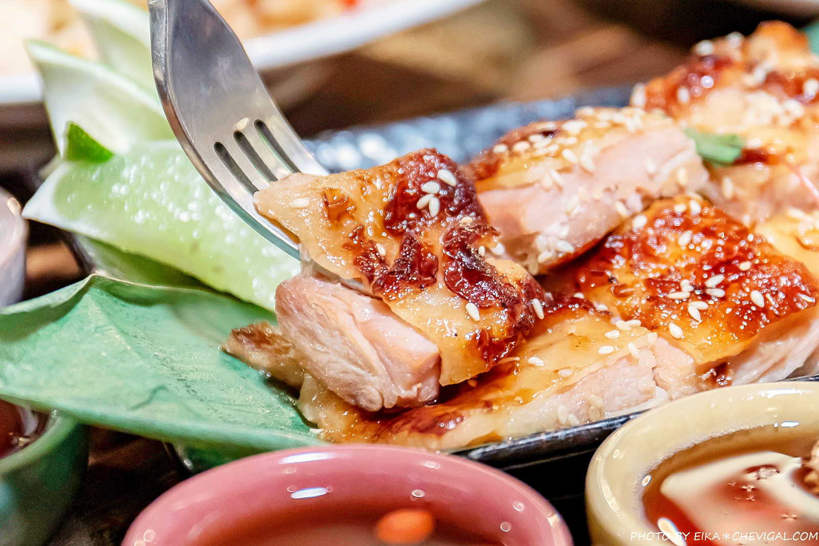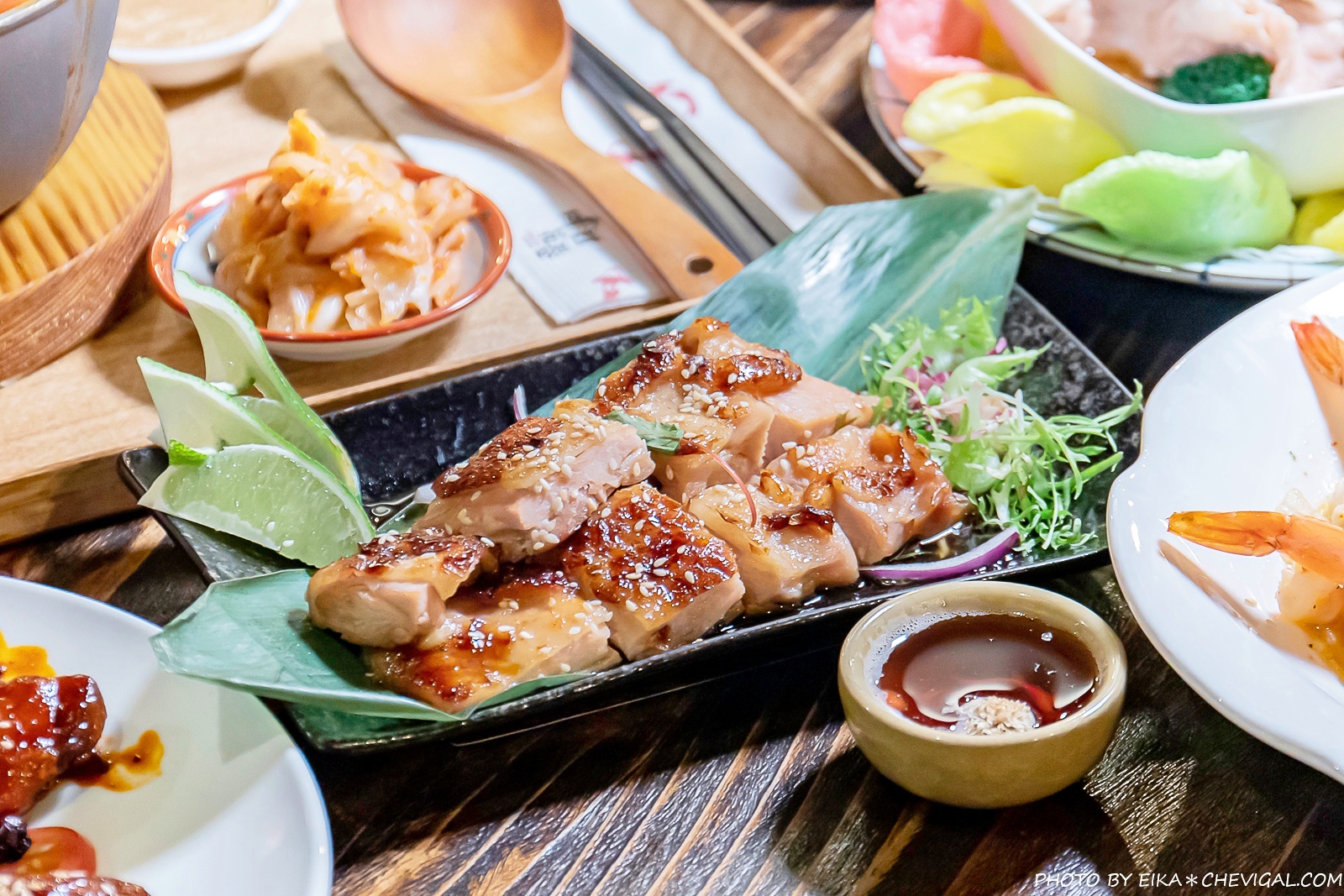 雞腿肉在烤製前會先用日式醬汁醃過,可以先吃原味後,在擠上適量的檸檬汁搭配嚐試。