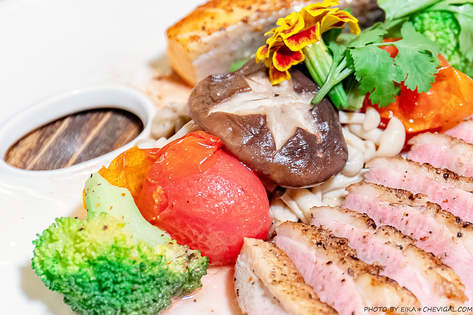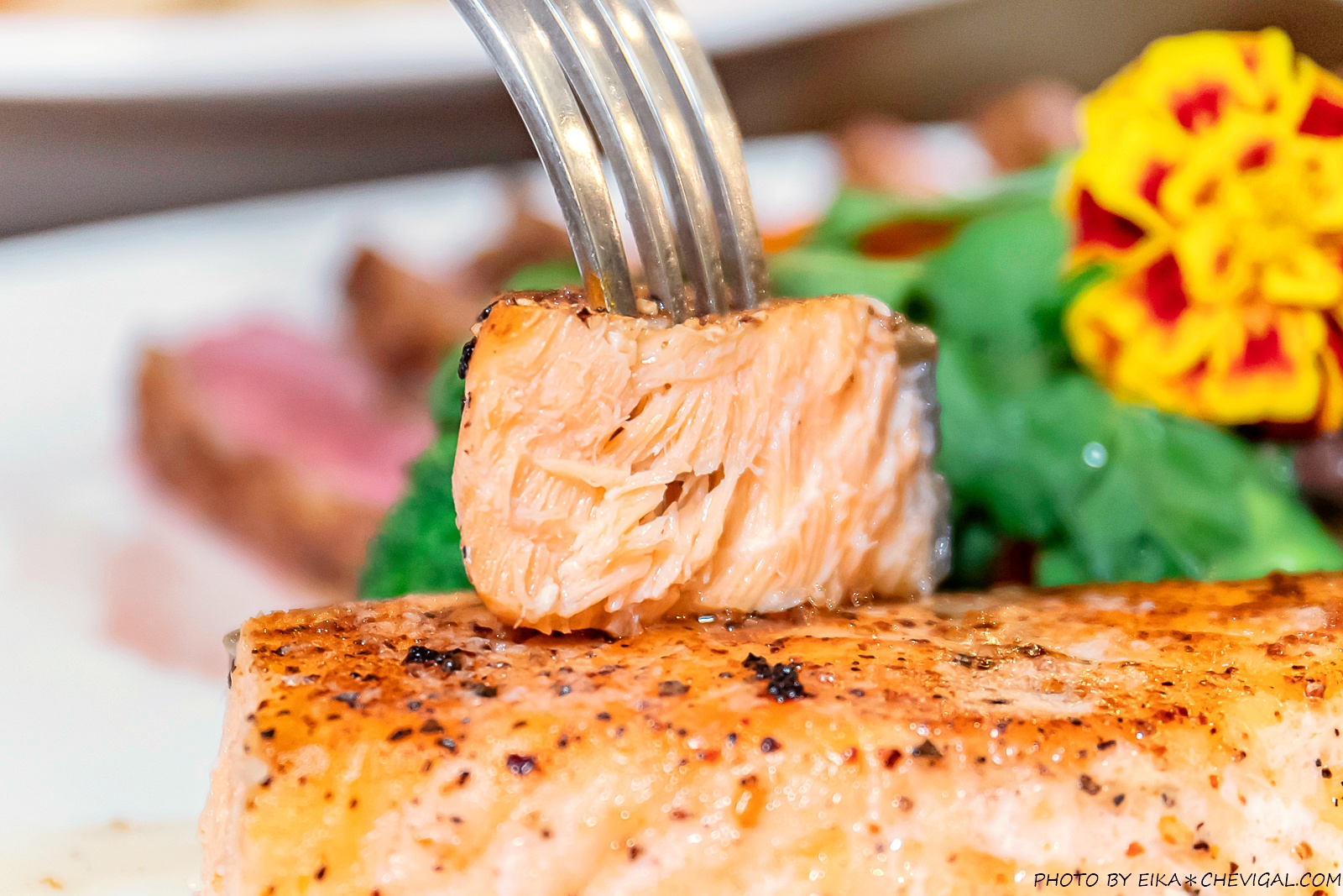 除了鴨胸與鮭魚排之外,整份餐點還搭配了多種時蔬,不僅在擺盤配色方面更顯質感,也很爽口解膩。