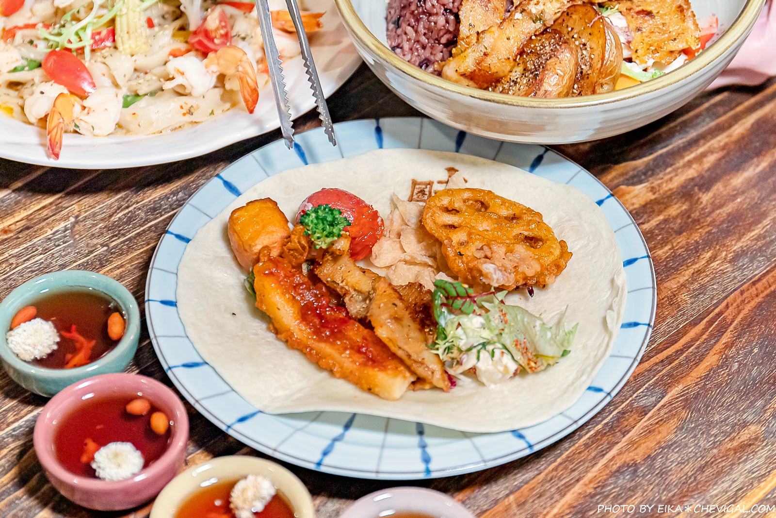 既然來到了昨日花卷,那麼肯定不能錯過最為經典的招牌花卷系列;原本以為花卷是直接捲好送上桌,後來才發現花卷的吃法十分自由隨性,可以自己搭配主食或副食捲起來,也能直接挑味享用。