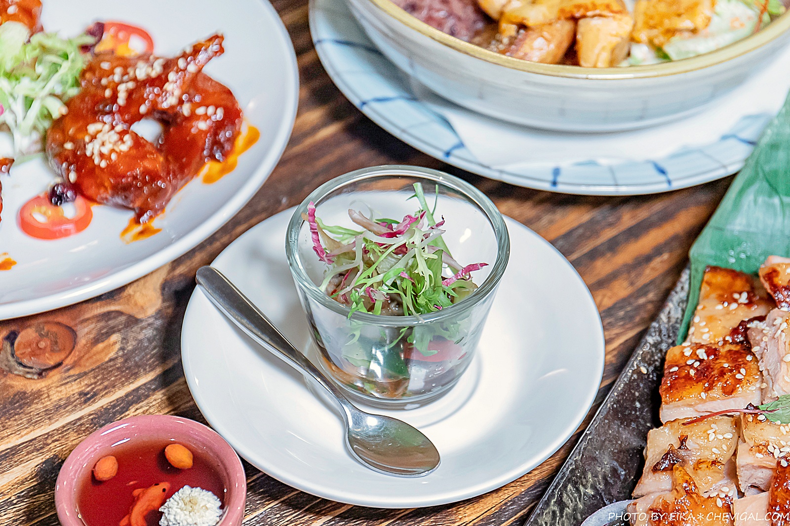 愛吃辣的朋友照過來,韓式炸雞翅的外皮包裹著特製的韓式辣醬,我們覺得是當天三種開胃菜中口味最重的一道,不過鹹度我們還可以接受~