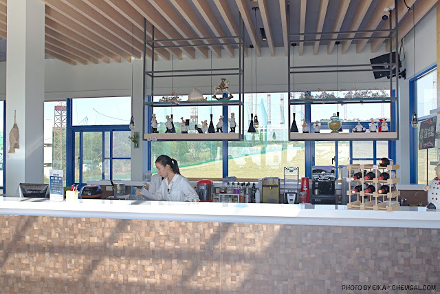 室內的裝潢以清新的木料材質,搭配具有海洋風格的藍白色系,讓人覺得輕鬆不壓迫。