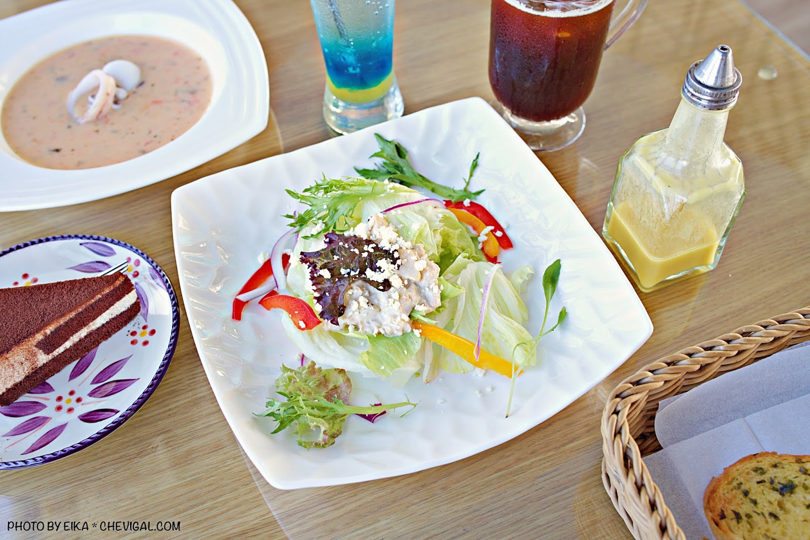 柚編這天點了一份套餐,首先送上來的是田園沙拉,搭配黃芥末的風味還不錯,整盤一下子就吃光光了。