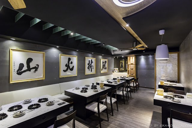另一側是以大片玻璃間隔而成的長型包廂,大約可容納12人左右;柔和的燈光與溫暖的木料質地,加上各種日式擺設,不僅漂亮好拍,就算帶長輩前來也不失正式與體面。