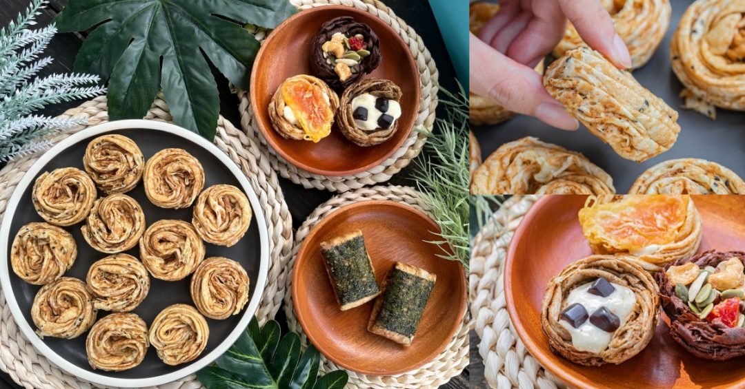 另一款是限定版的藏心鳳酥捲,做工相當繁複,不僅榮獲去年台灣百大糕點伴手禮的獎項,更是全台首創,將鳳梨酥包在千層蛋捲裡頭!目前有三種口味,分別以芝麻、抹茶和巧克力千層蛋捲包入含有土鳳梨餡的鳳梨酥,外酥內軟的層次感超級豐富!