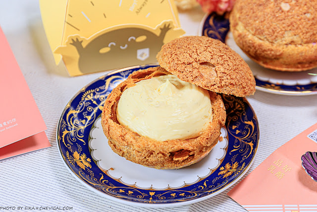 如果你們是在現場購買單顆泡芙的話,也有提供這種小巧可愛的紙盒包裝,不僅方便直接外帶,享用時也不怕內餡沾手或碎屑掉滿地,當作下午茶也很不賴。