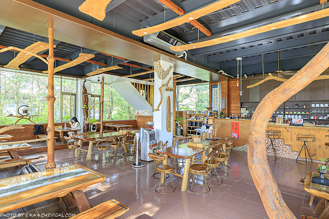 室內的座位多以木料質地為主,不僅擁有特別挑高的設計,更搭配上大片窗面透映進來的綠意,讓人不禁暫時忘卻了都市的暄鬧,更能盡情感受這片刻難得的寧靜。