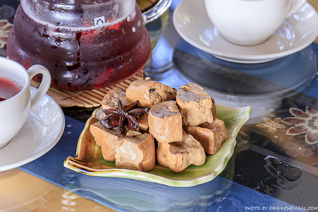 滷豆干$60元,每天提供的小點品項稍有不同,因此在菜單上沒有特別列出,可以直接詢問店家。滷豆干滷得相當入味,帶點八角獨有的香氣與滷汁的甜味,吃起來稍有嚼勁又不失香嫩。