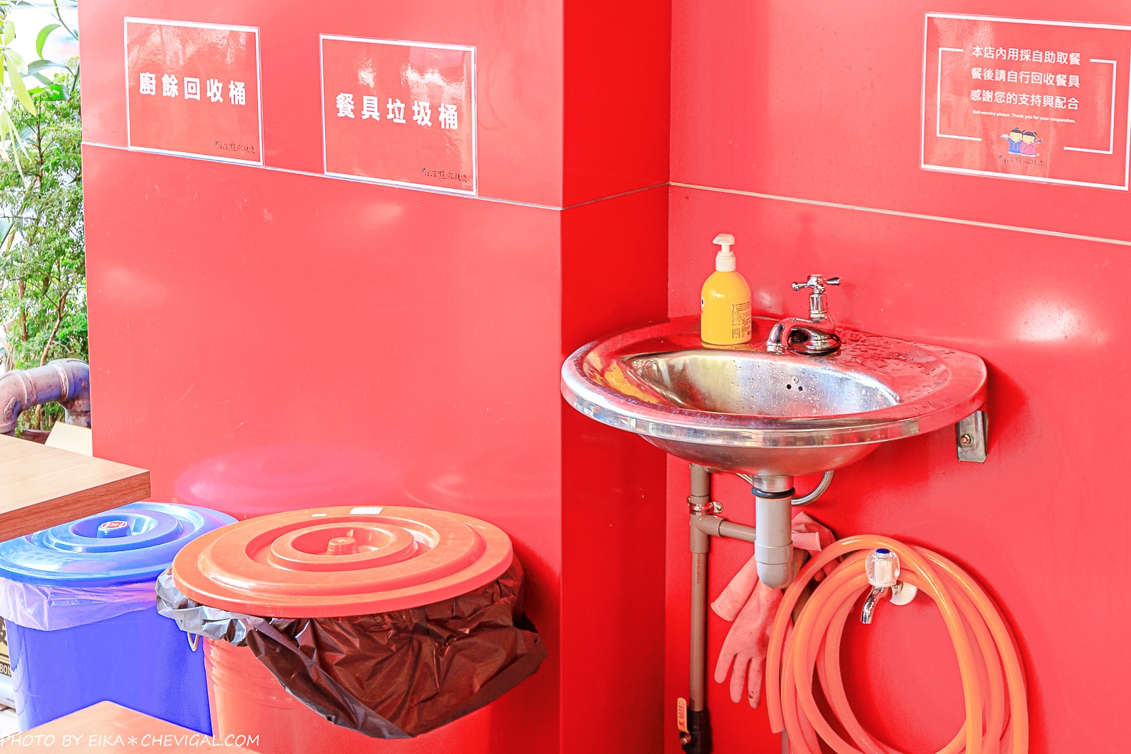 這裡內用是採自助式取餐,吃完之後別忘了幫忙回收、分類,旁邊還有提供洗手台與洗手乳可以清潔。