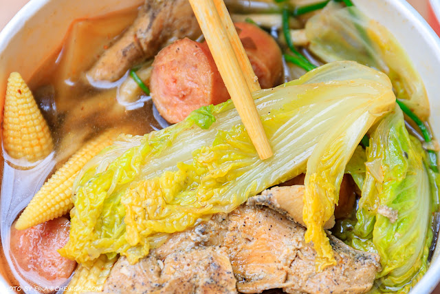 店家對於蔬菜的新鮮度與品質,吃得出來都有一定的堅持;白菜選用比較嫩的部分,燉煮過後吃起來細緻順口;玉米筍與水蓮清甜爽脆,特別是玉米筍的甜度還蠻高的!