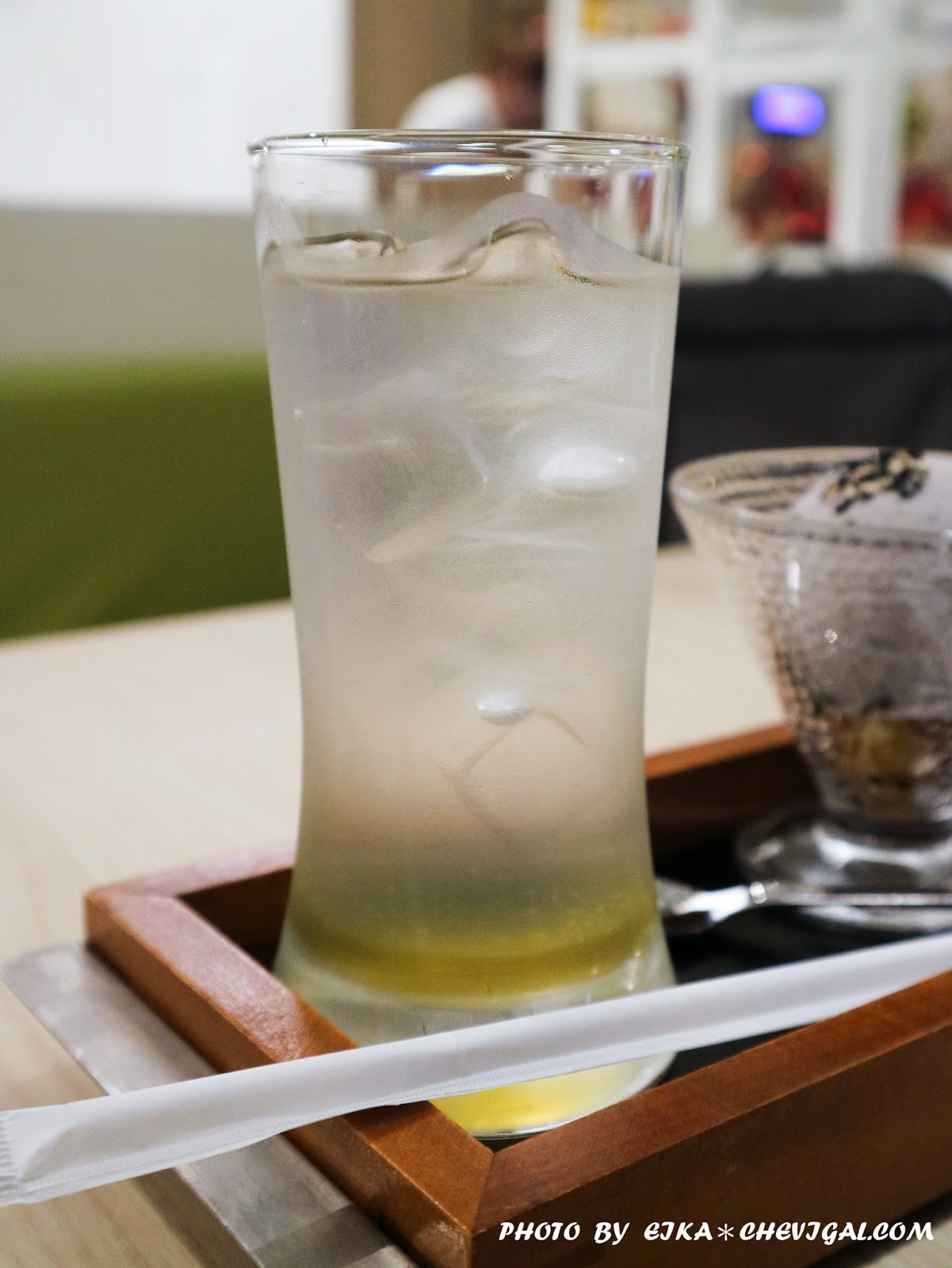 餐後甜點,魚兒選擇的是白桃氣泡飲跟日式芝麻冰淇淋。