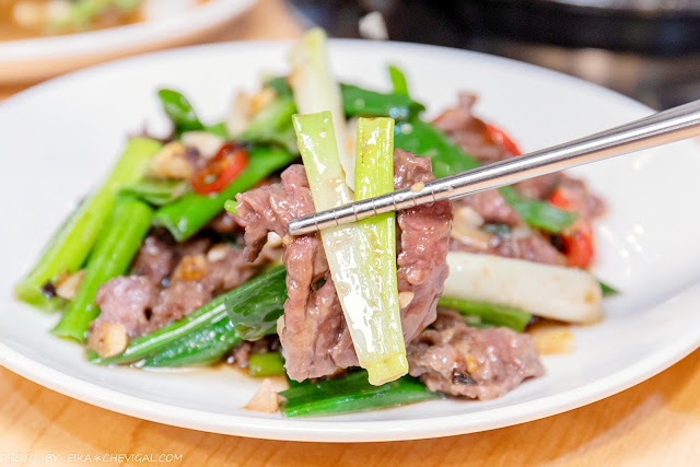 蔥爆炒牛肉$200元,這道是我們這天最喜歡的熱炒菜色,不僅看起來色香味俱全,整體的風味具有層次而不死鹹,單吃也不易覺得膩口。