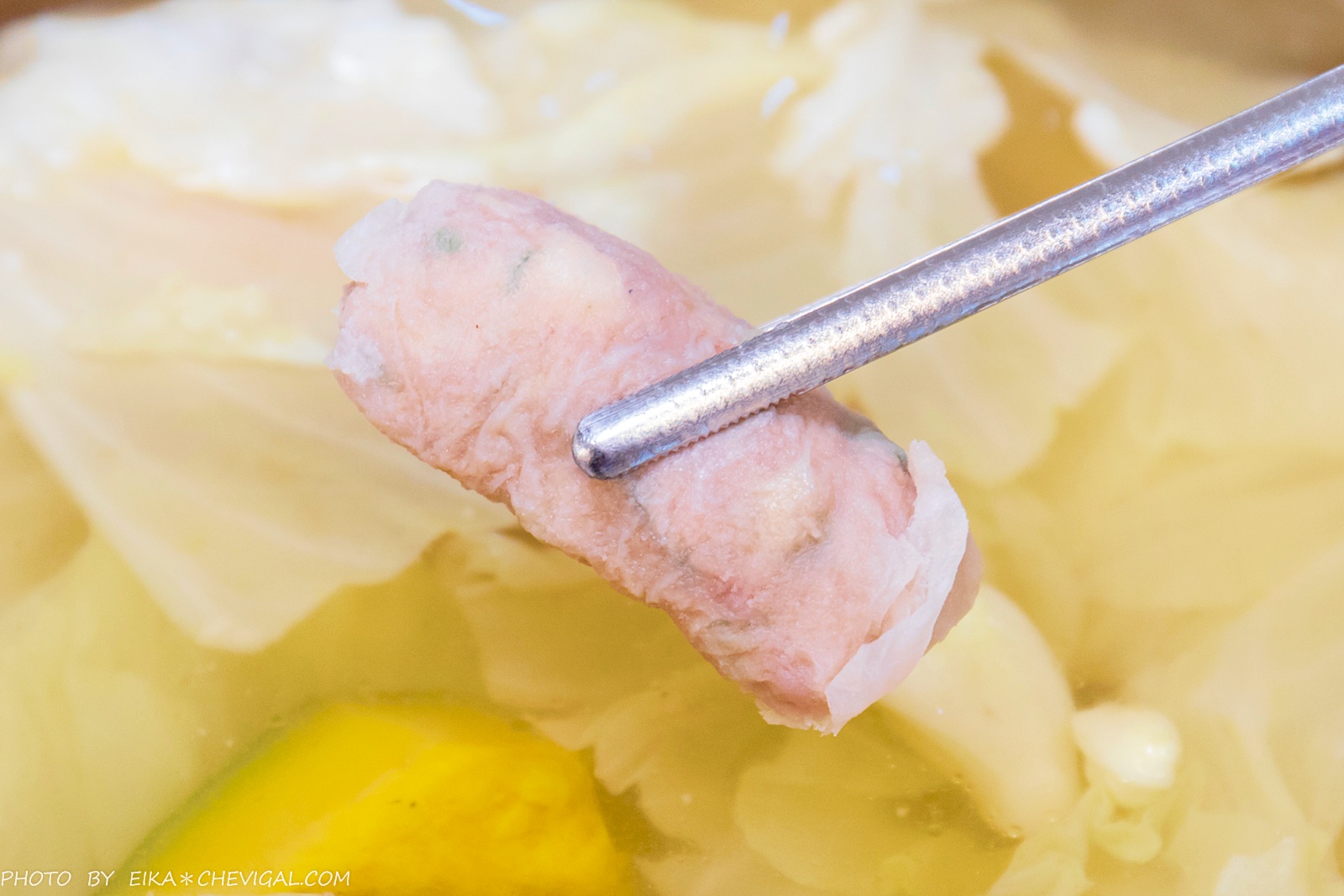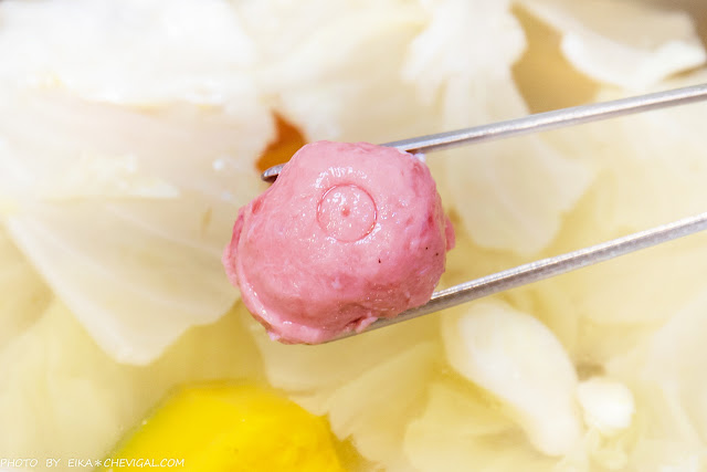 手打牛肉丸$150元,粉嫩的色澤相當討喜,煮透變為肉色之後即可起鍋;口感雖然不到爆汁,但是多汁的程度也算是幾近爆汁了!