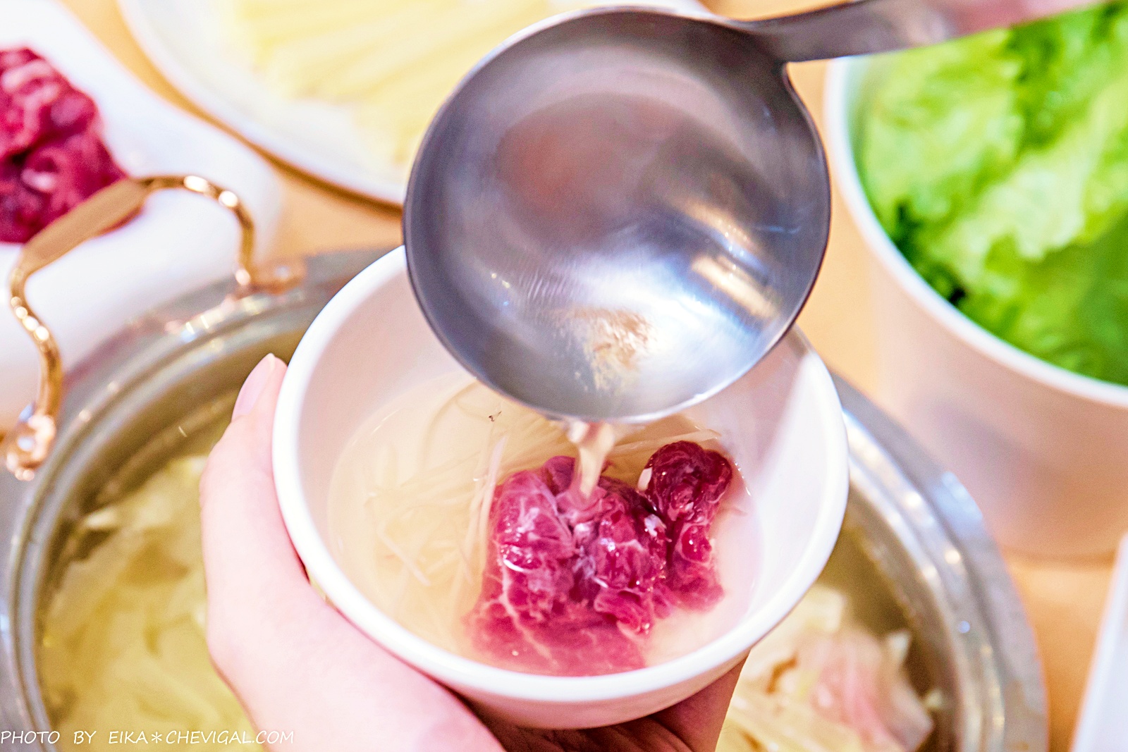 湯滾後即可下鍋,記得只需要涮3至5秒就能起鍋,牛肉會呈現粉紅色的鮮嫩色澤,口感吃起來十分彈牙,單吃就很不錯。