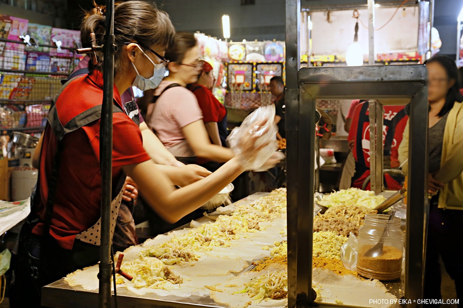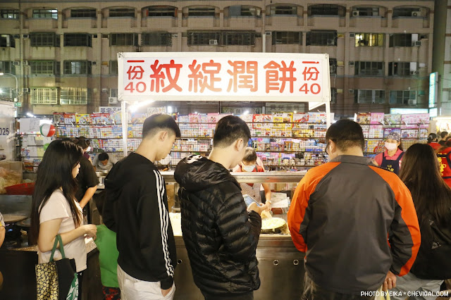 不同於霧峰夜市其他的小吃攤位,紋綻潤餅的攤位較為偏離小吃販賣區,讓我們差點以為又要撲空啦!你沒看錯,這誇張的排隊人潮竟然都是為了要買潤餅~