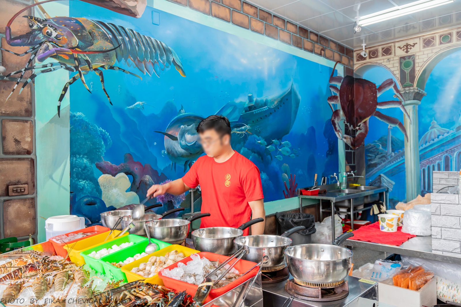 不管是龍蝦哥還是螃蟹弟,通通都畫得栩栩如生,不用特別到海生館或彩繪村,來粥霸吃粥也能拍照打卡超飛炫!