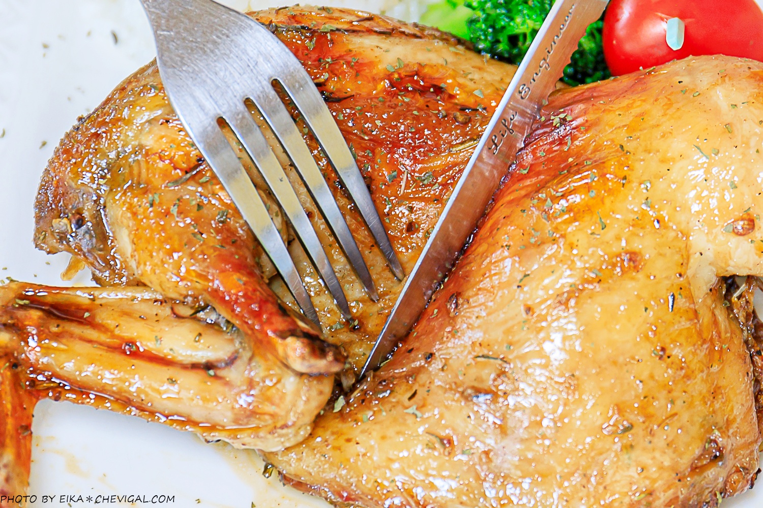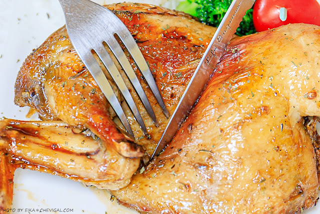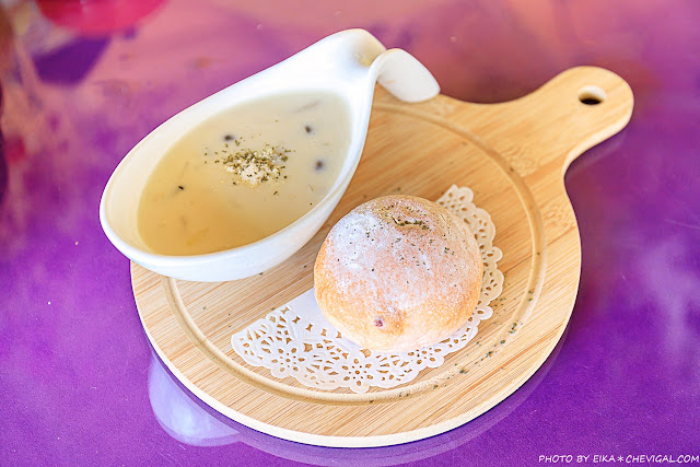 我們點了一份綠胡椒肉桂烤雞,套餐附有濃湯、麵包、飲料與甜點,附餐飲料若另選單點區飲品則可折抵70元。
