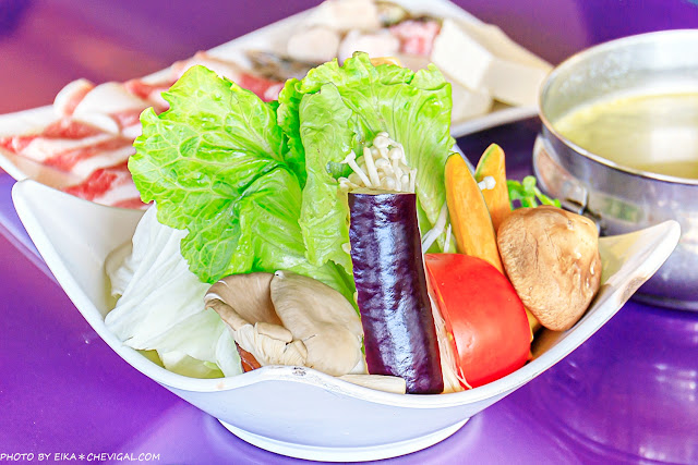 蔬菜盤的種類也很豐盛,新鮮度也很不錯,多到快放不進鍋內了!最特別的是紅椒檸檬香茅鍋的湯底,原本還好奇說怎麼沒有看到紅椒,後來才知道是加入湯頭一同熬煮;喝起來有著細緻的香草香氣,入口舒服爽口,而且愈煮愈加鮮甜哦~