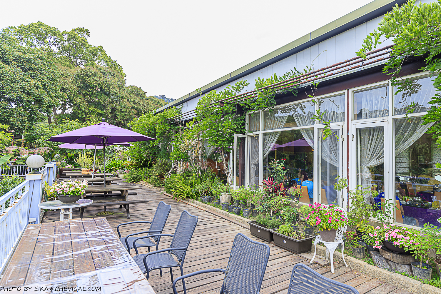 餐廳旁邊還有美麗的白色鏤空馬車,幾乎來到這裡的客人都會在這裡拍張美照,背景還能搭配著紫羅蘭色的大陽傘,如果不說恐怕都會還以為是在國外的某個景點呢~