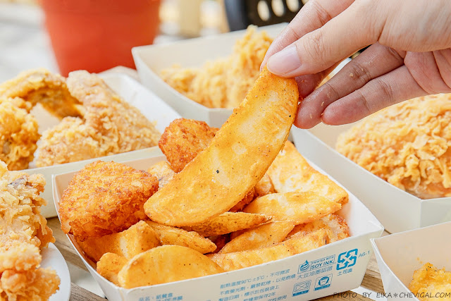 覺得點了這麼多炸物很難帶回家嗎?店家還有另外手提式的厚紙盒可以外帶,真的還蠻方便的~