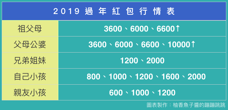 【2019過年紅包行情表】