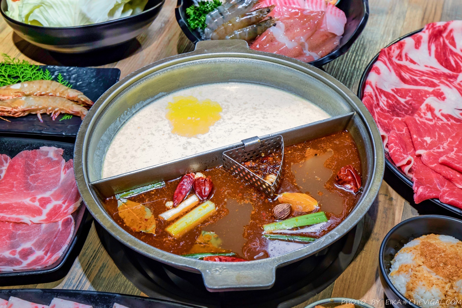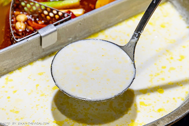 我們這天點的湯底是起司牛奶與招牌川府香辣口味,這兩款可以說是店內的招牌湯底,也有不少客人覺得這兩款湯頭做成鴛鴦鍋還不錯吃~