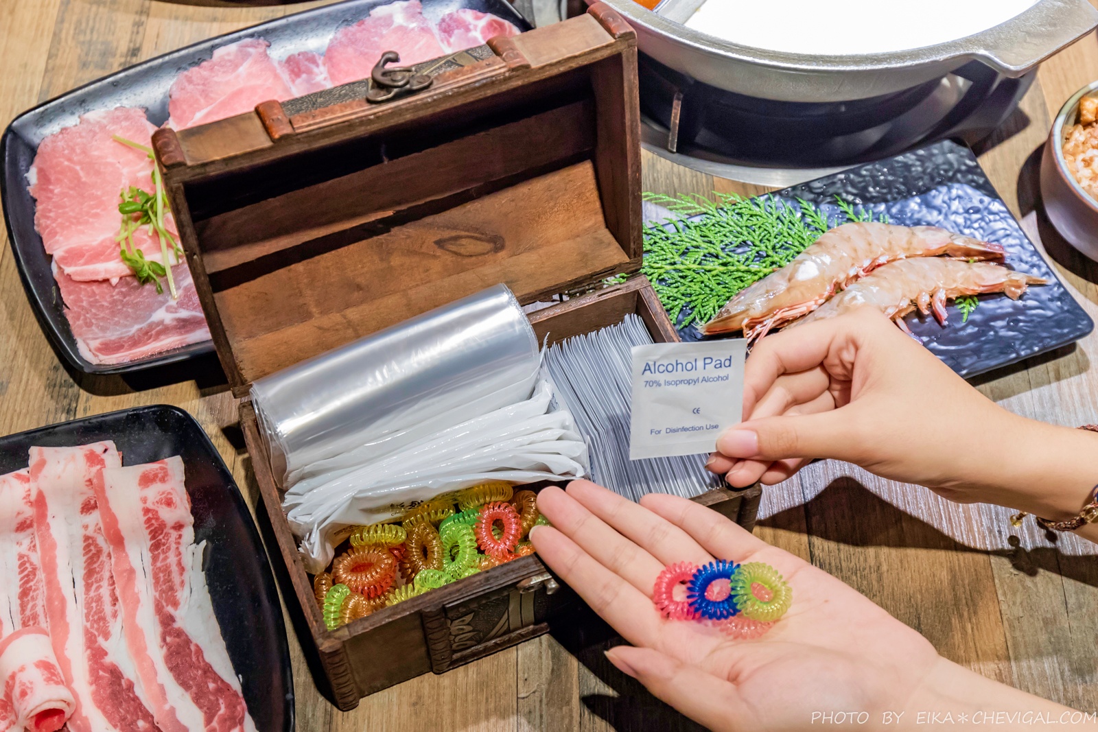 餐前不僅會送上紙巾擦手,還會詢問要不要用密封袋包住手機,避免湯汁噴濺;店員看到魚編長髮又戴眼鏡,竟然還貼心地詢問是否需要髮圈和拭鏡布~