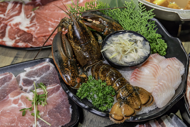 整份海鮮盤除了波士頓龍蝦之外,另外還有鯛魚片與鮮蚵,鯛魚片的肉質細緻軟嫩,鮮蚵吃來飽滿多,搭配招牌川府香辣湯底真的很不賴~