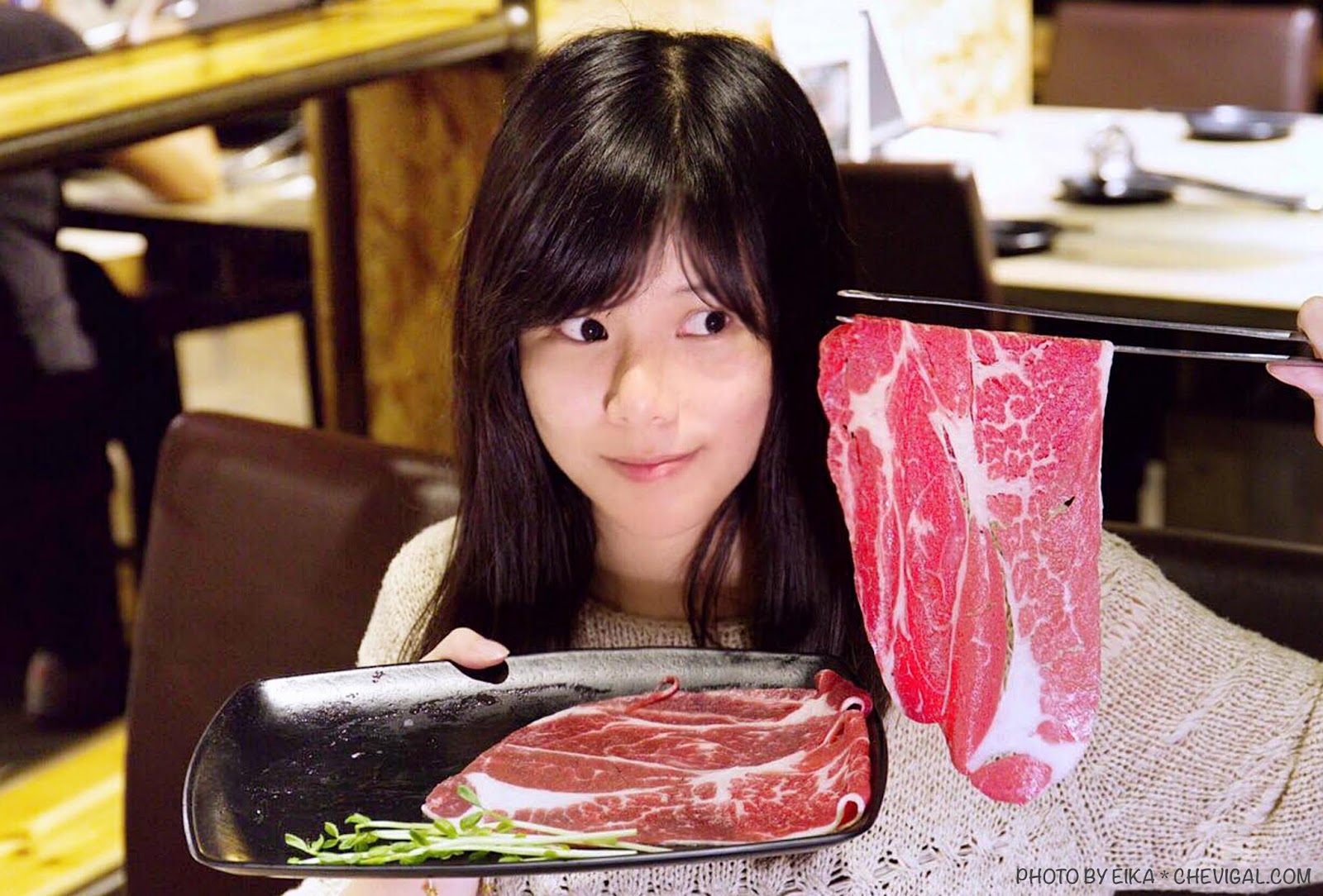 看這肉片的大小真的很誇張!不僅都比魚編的臉還要大了!重點是具有一定的厚度,也幾乎不會透光,和一般小火鍋店所使用的重組肉完全不同~