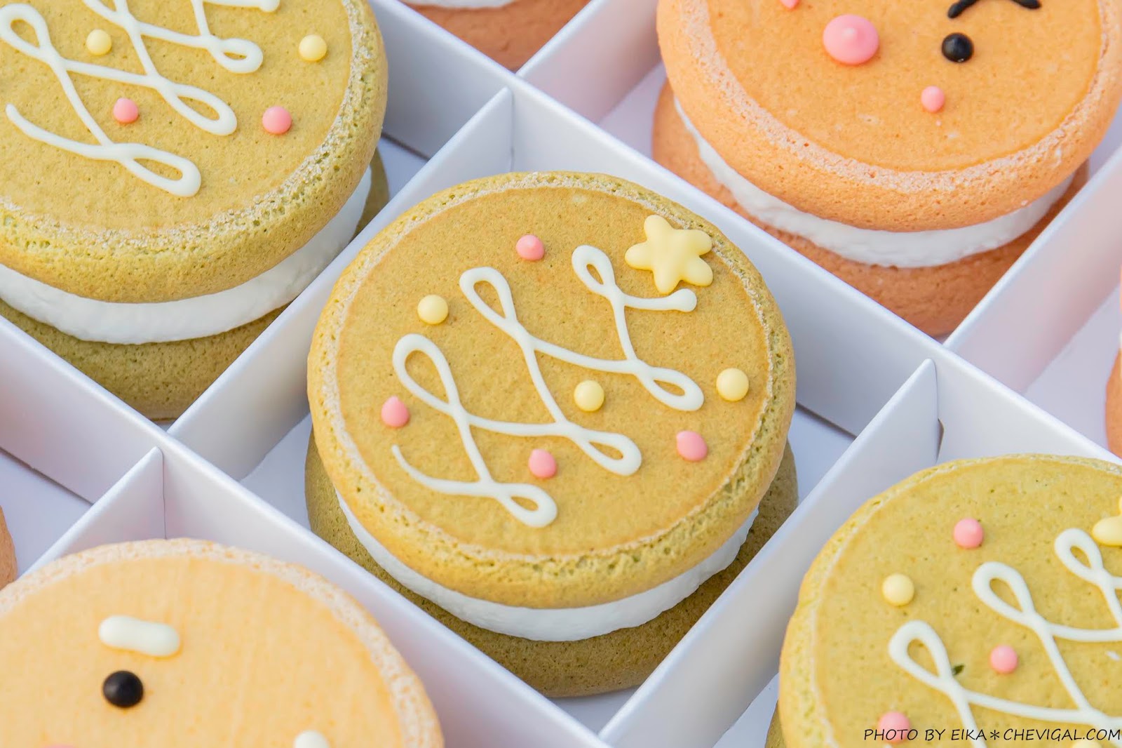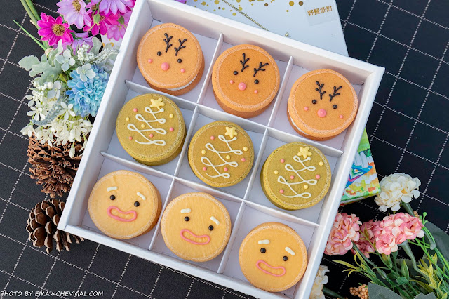 因應下個月即將到來的聖誕節,卷卷烘焙也推出了限定版的聖誕派對禮盒囉!盒內含有麋鹿、聖誕樹跟囧餅人三種造型的生乳銅鑼燒。我們還開玩笑地說之後期待會有聖誕老公公的造型,但光是想到要畫上濃密的鬍鬚,甜點師傅應該會想揍我們吧XD